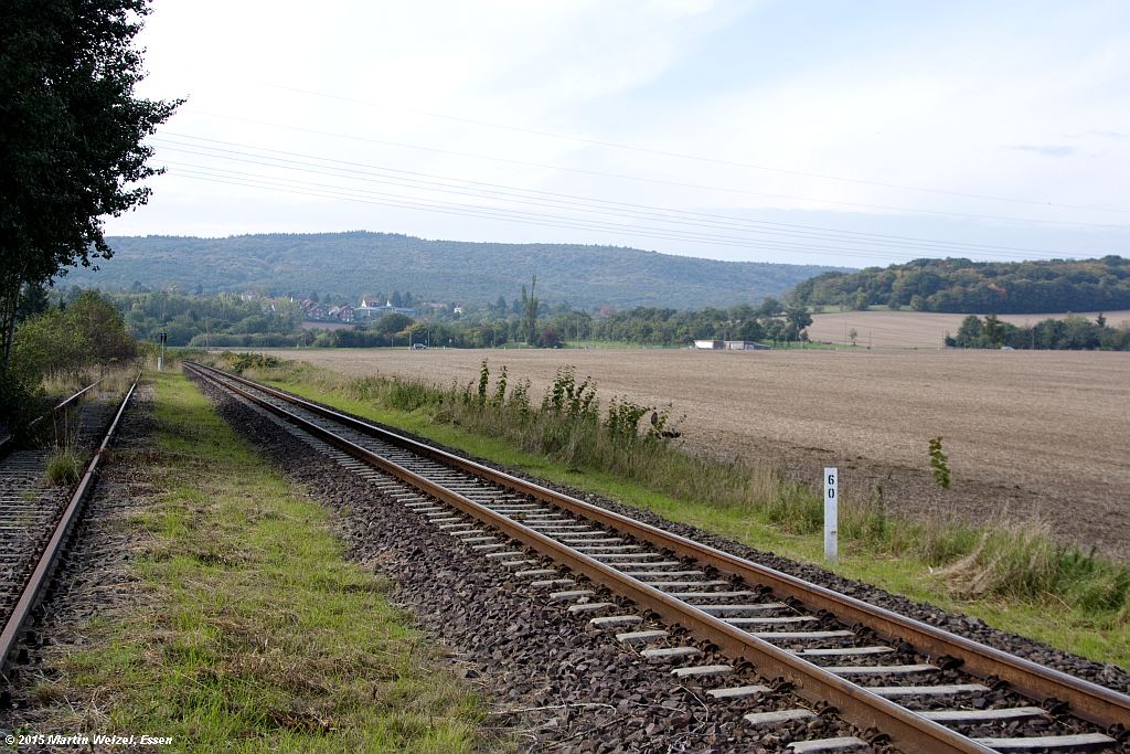 Rechts das Gleis der Strecke Magdeburg Hbf 0,0 - Oschersleben (Bode) 38,24 - Halberstadt 58,53 - Wegeleben 65,82 - Thale 86,75