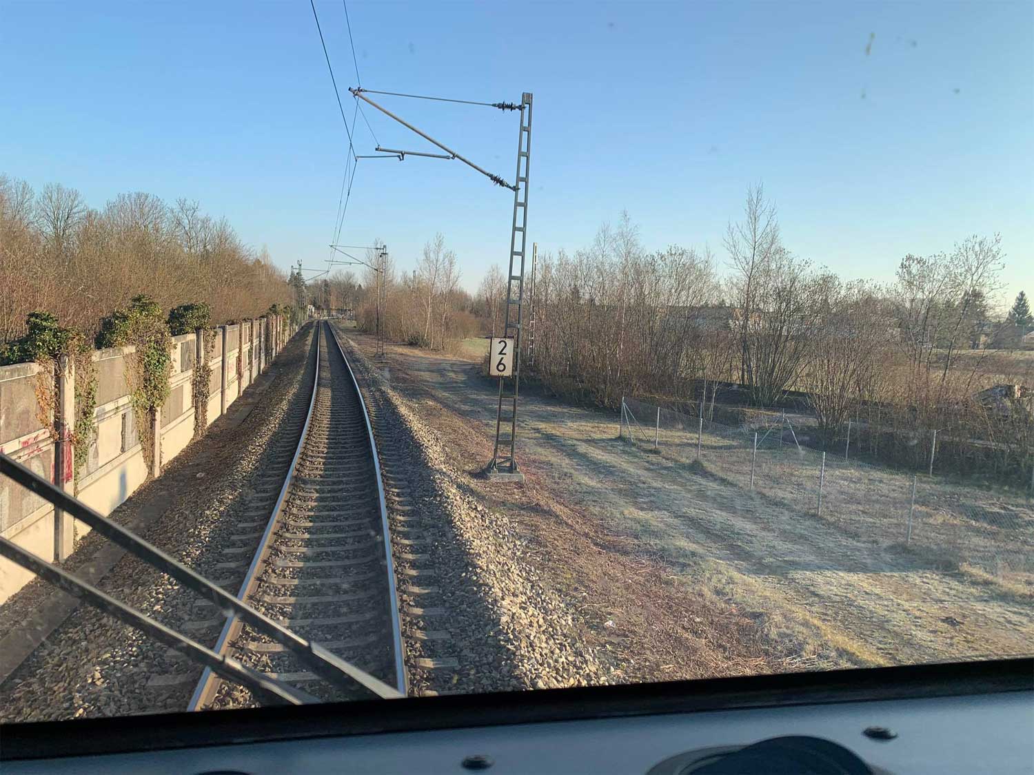 bei km 2,5 (Richtungsgleis) zwischen Olching und Streckenwechsel - Blick