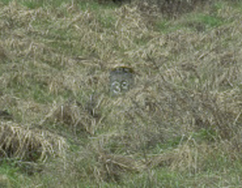 Vor dem Mast ist noch der Stein km 38,6 zu sehen.