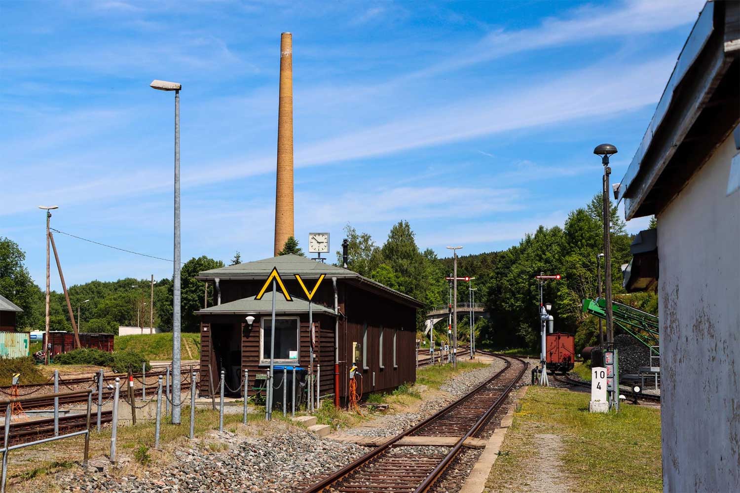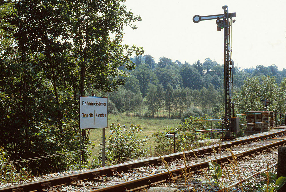 km 0,4 (am Stellwerk) gehört zur Strecke Annaberg-Buchholz Süd 0,0 - Schwarzenberg (Erzgeb) 24,11 (BSg)