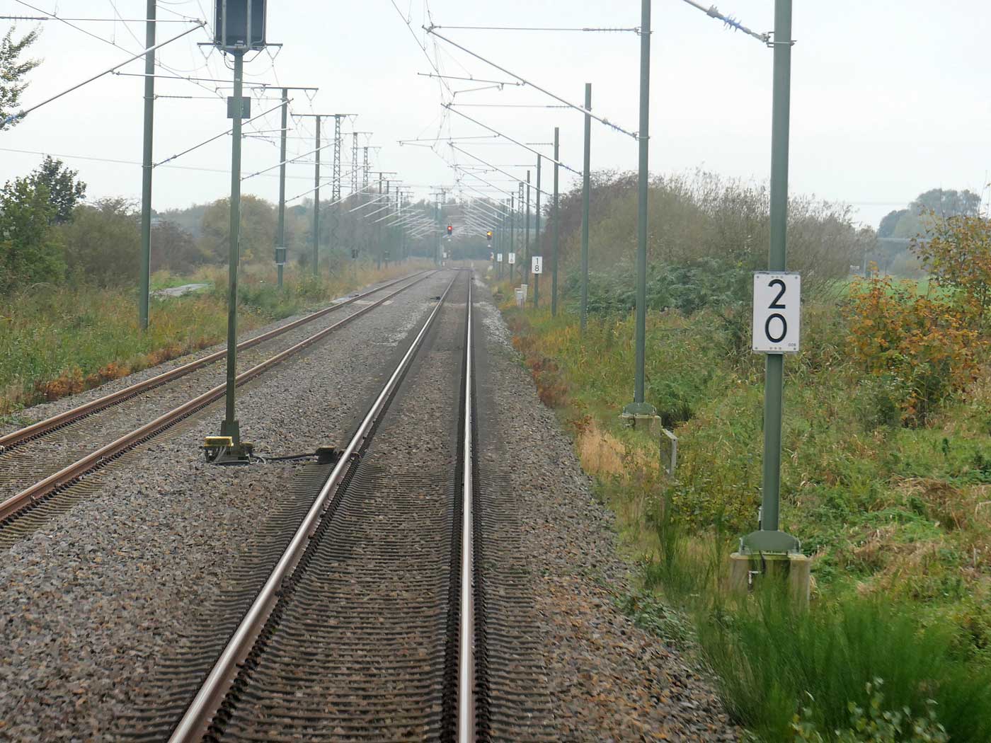 km 0,2 und km 0,4 - Blick Richtung Abzw Schortens Weißer Floh (Abzw Wilhelmshaven Nordstrecke)