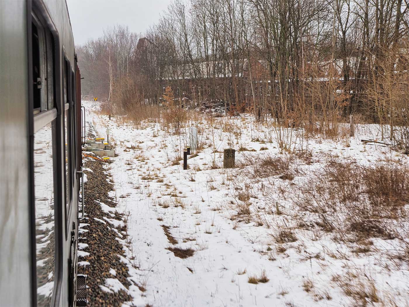 Rechts km 129,8 der Strecke Dresden Hbf -0,048 - Chemnitz Hbf 79,73 - Zwickau (Sachs) Hbf 128,35 - Abzw. Werdau Bogendreieck (Neumarker Spitze) 136,23 (DW)