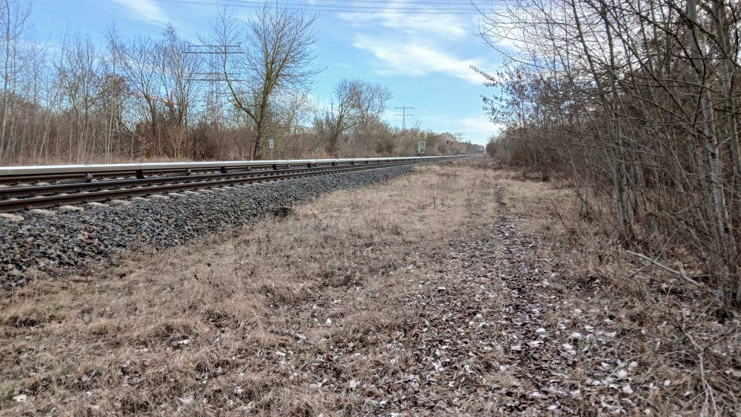Rechts der Berliner Außenring (BAR-Streckenabschnitt 6067) mit km 2,7