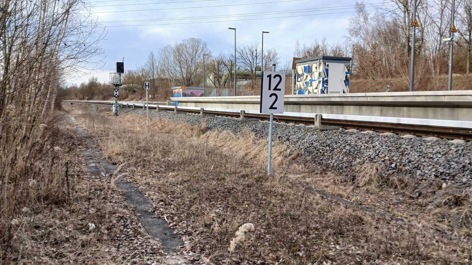 Rechts der Berliner Außenring (BAR-Streckenabschnitt 6067) mit km 3,4