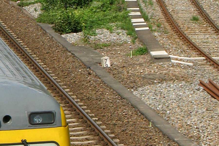 km 6,6 (Tafel und Stein) am Gegenrichtungsgleis in