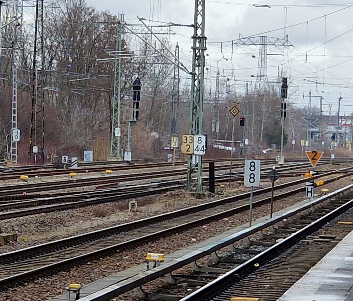 Mittig die beiden Gleise der Schlesischen Bahn mit km 10,2