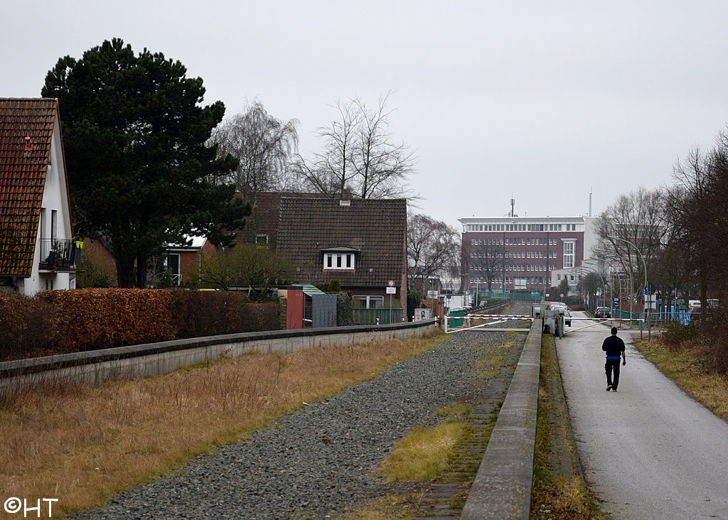 Direkt hinter der Rethe-Hubbrücke (Hohe Schaar)