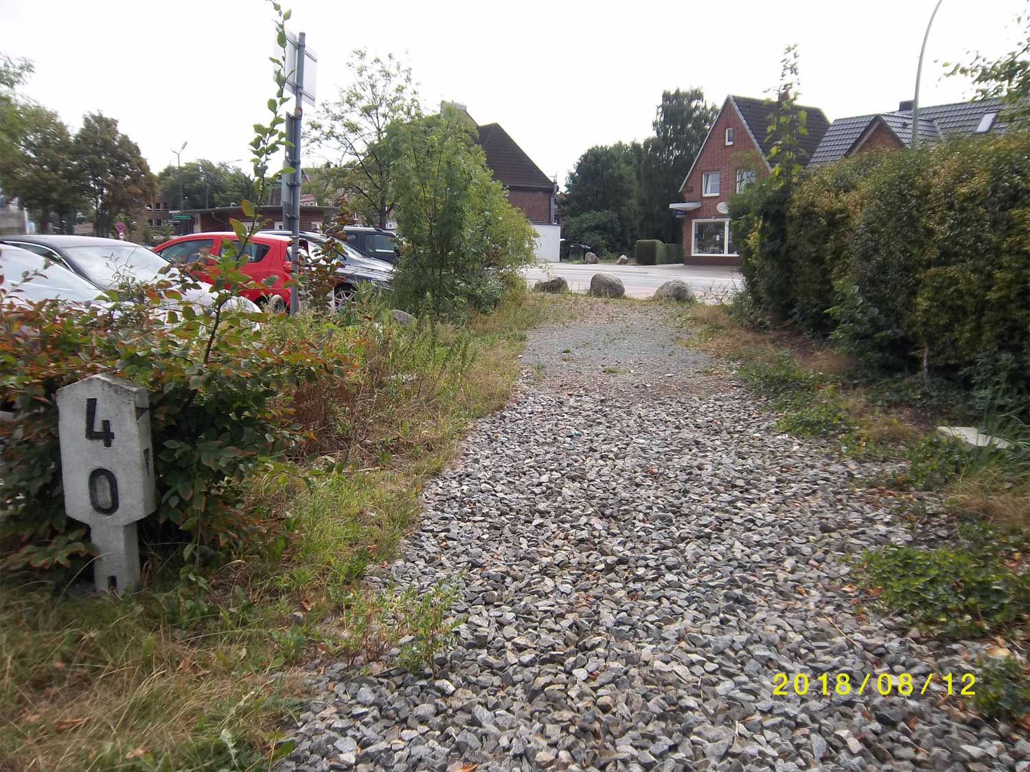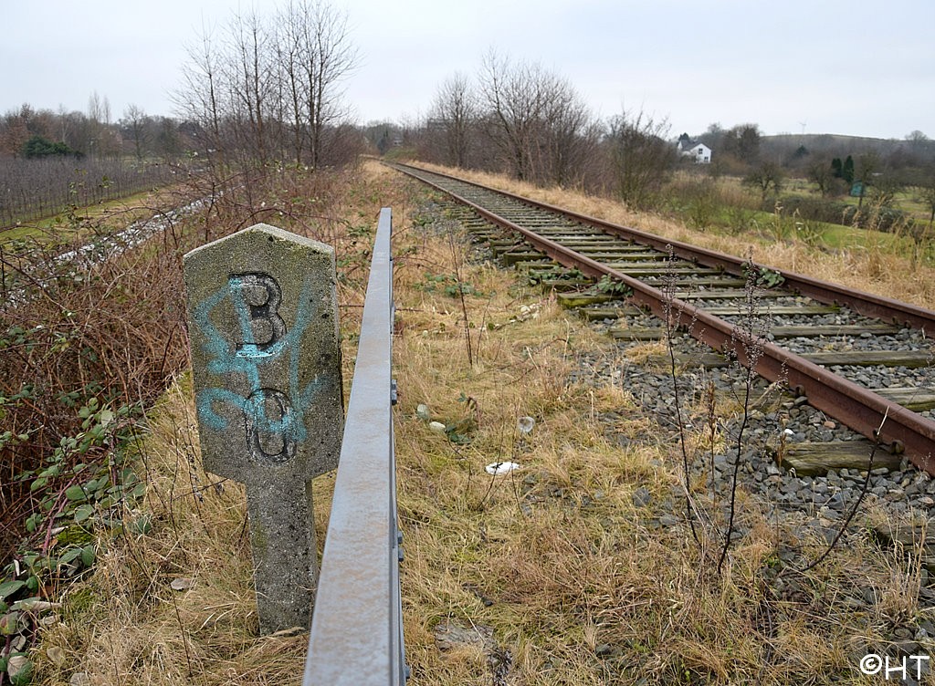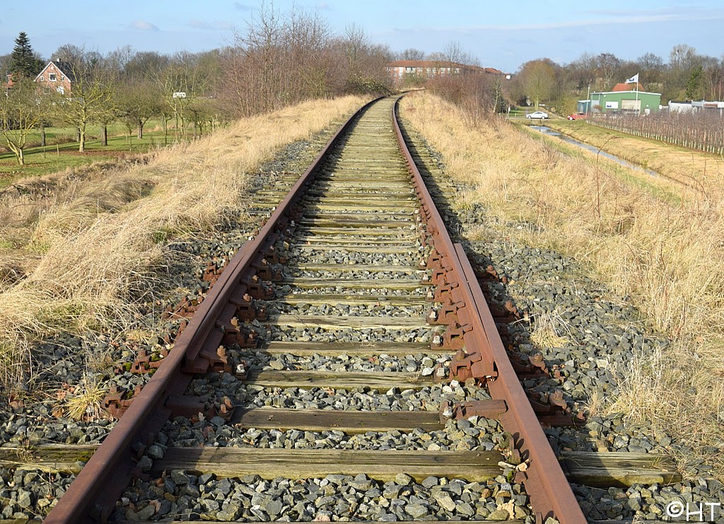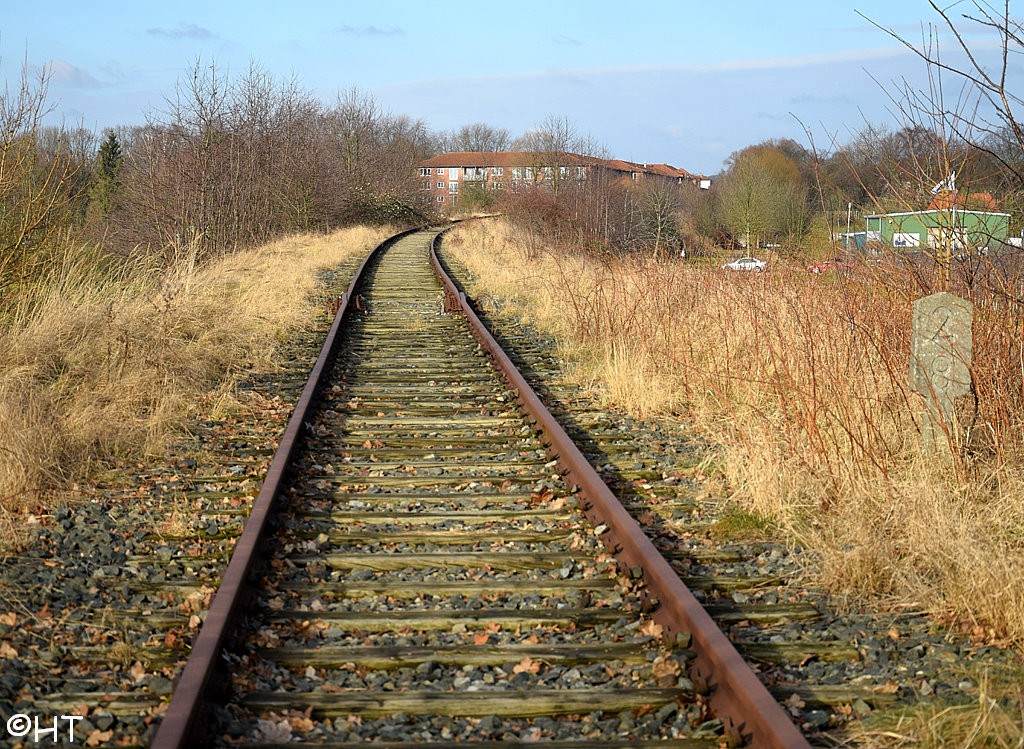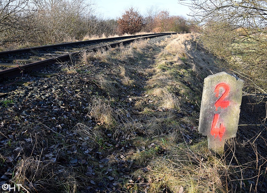 Nach dem Bahnhofsteil Pollhornweg wechselt die Kilometrierung auf REO.