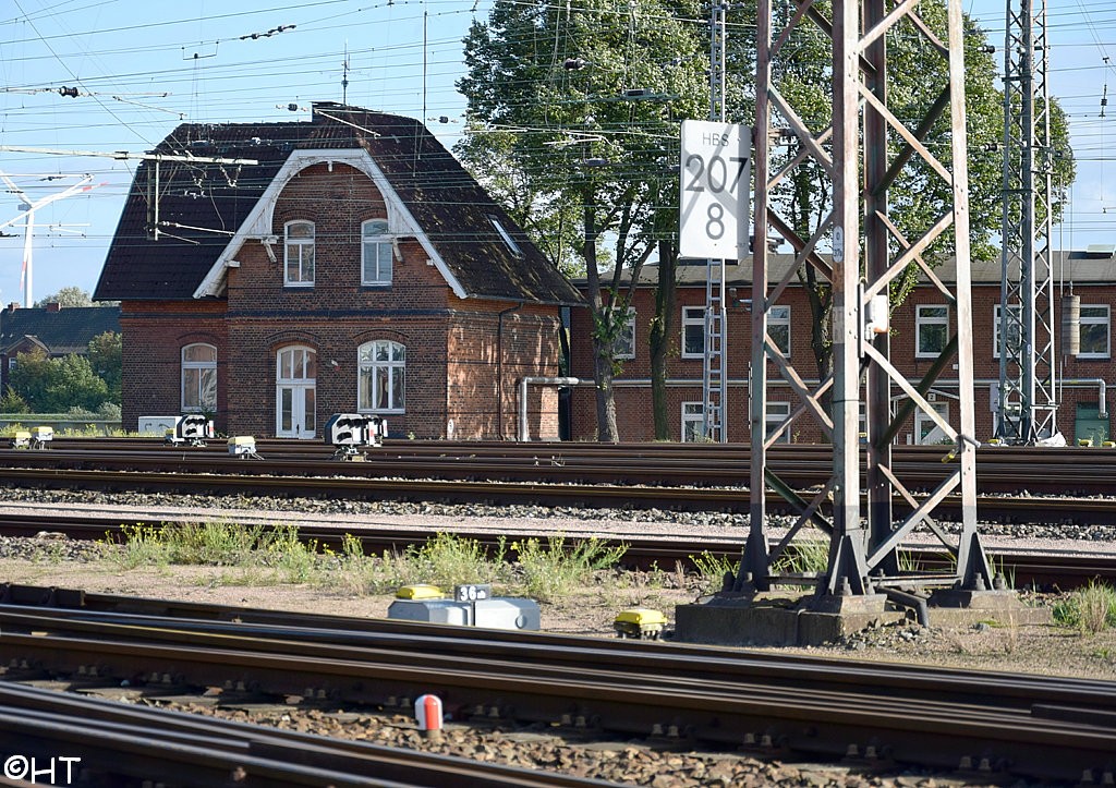 km 30,0 (HBS) [Veddeler Damm, Weiche HBS 004] liegt etwa bei km 207,5 (HBS) der Strecke