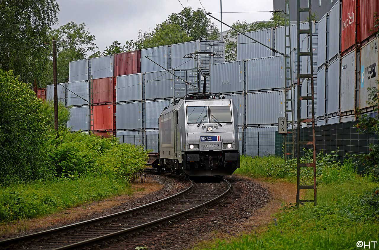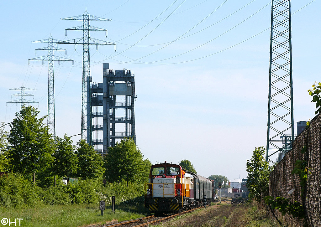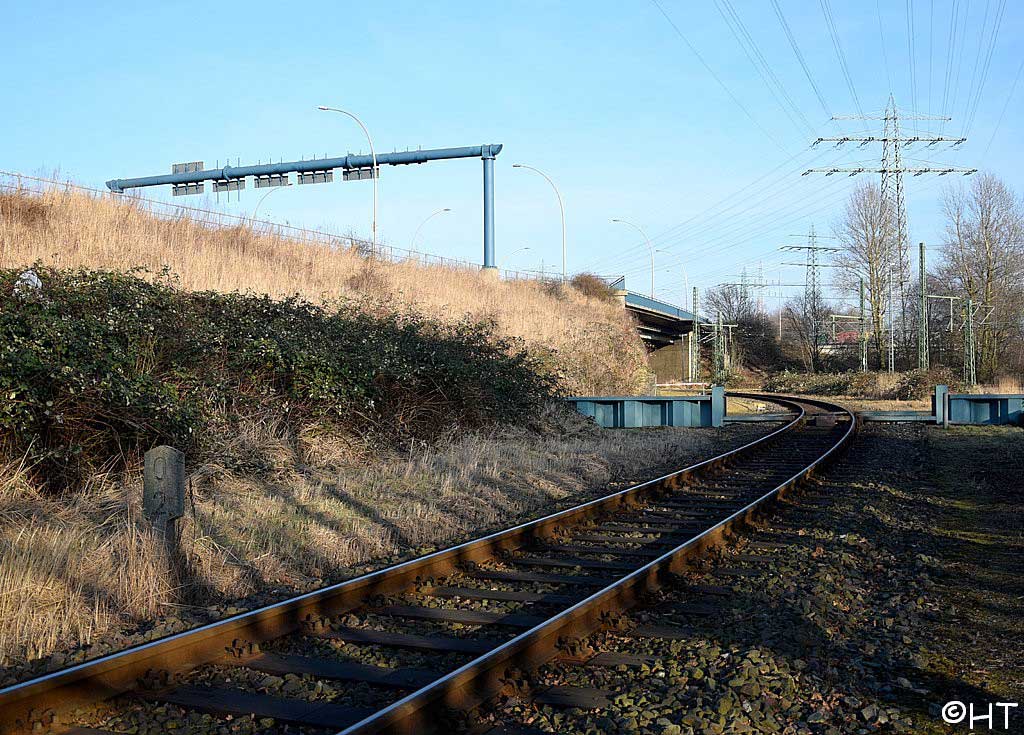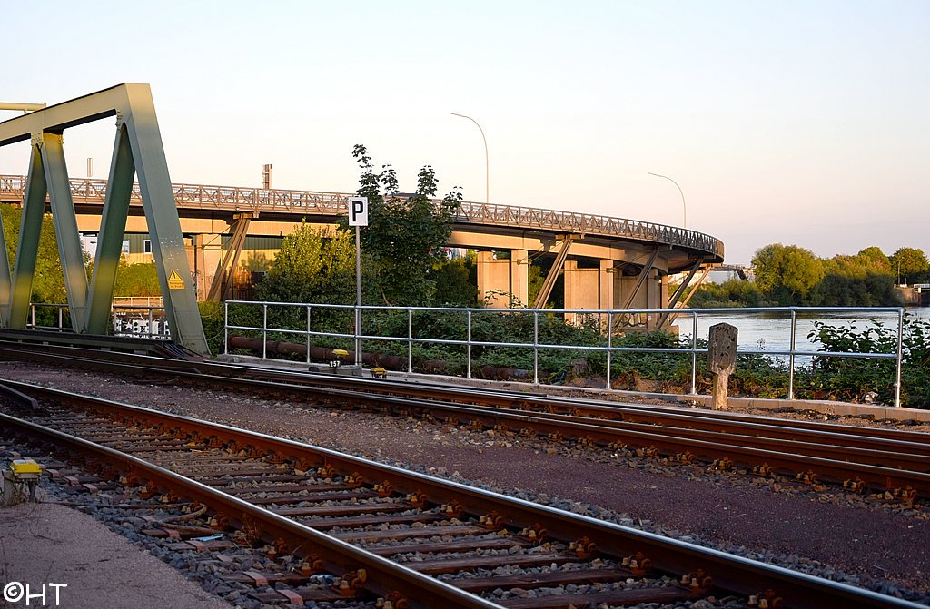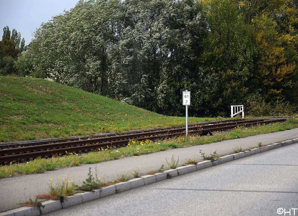 Im Vordergrund das Gleis der Hafenbahn, etwa km 30,35