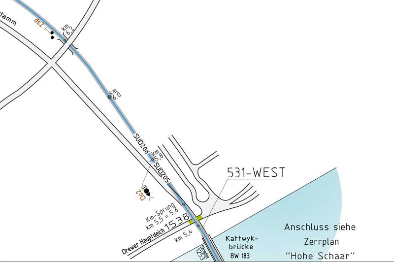 Übersicht km 4,8 bis km 5,0 (HOS) zwischen Hamburg Hohe Schaar Süd und Kattwykbrücke
