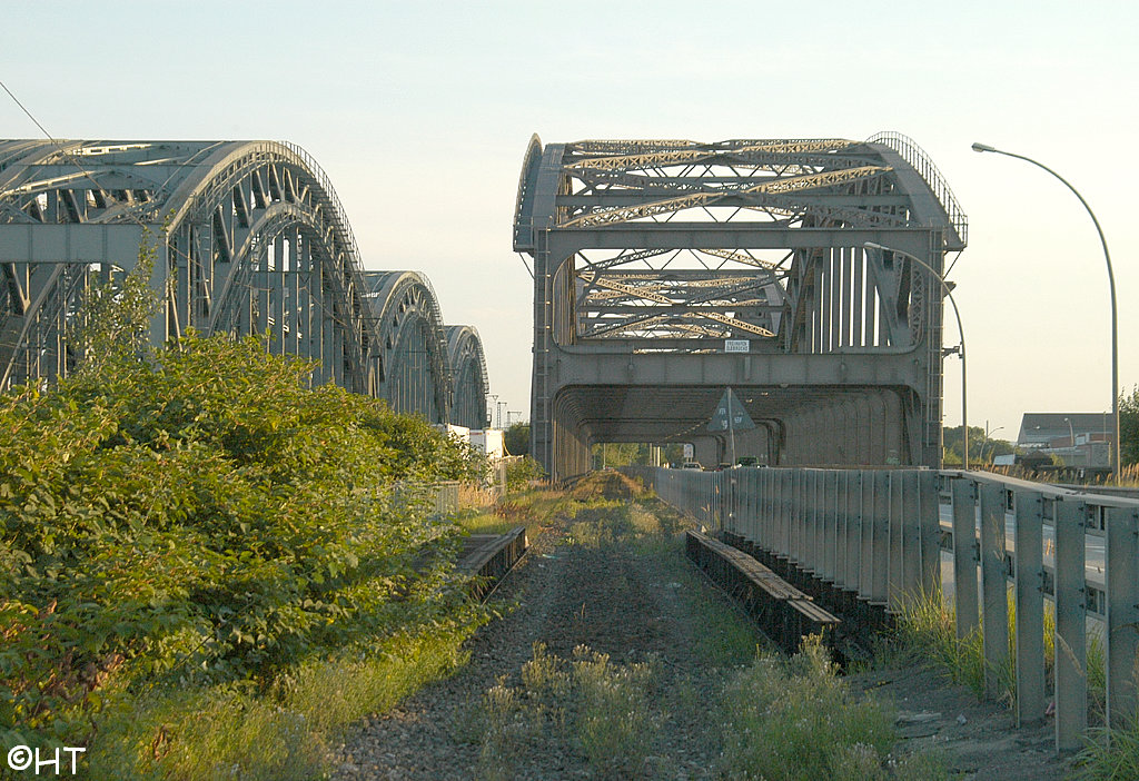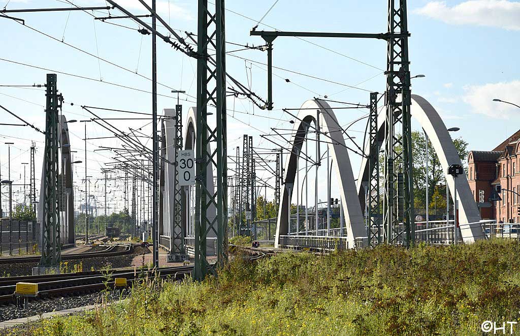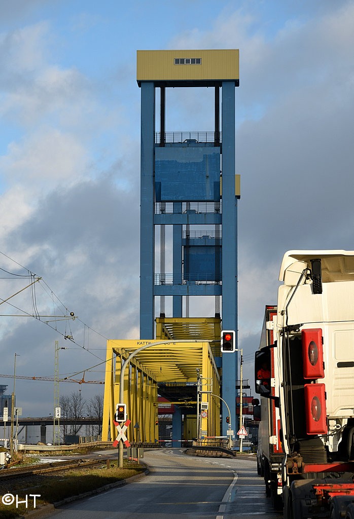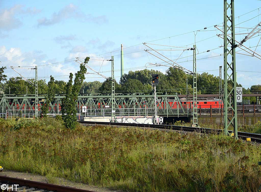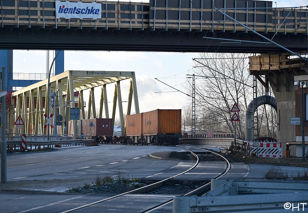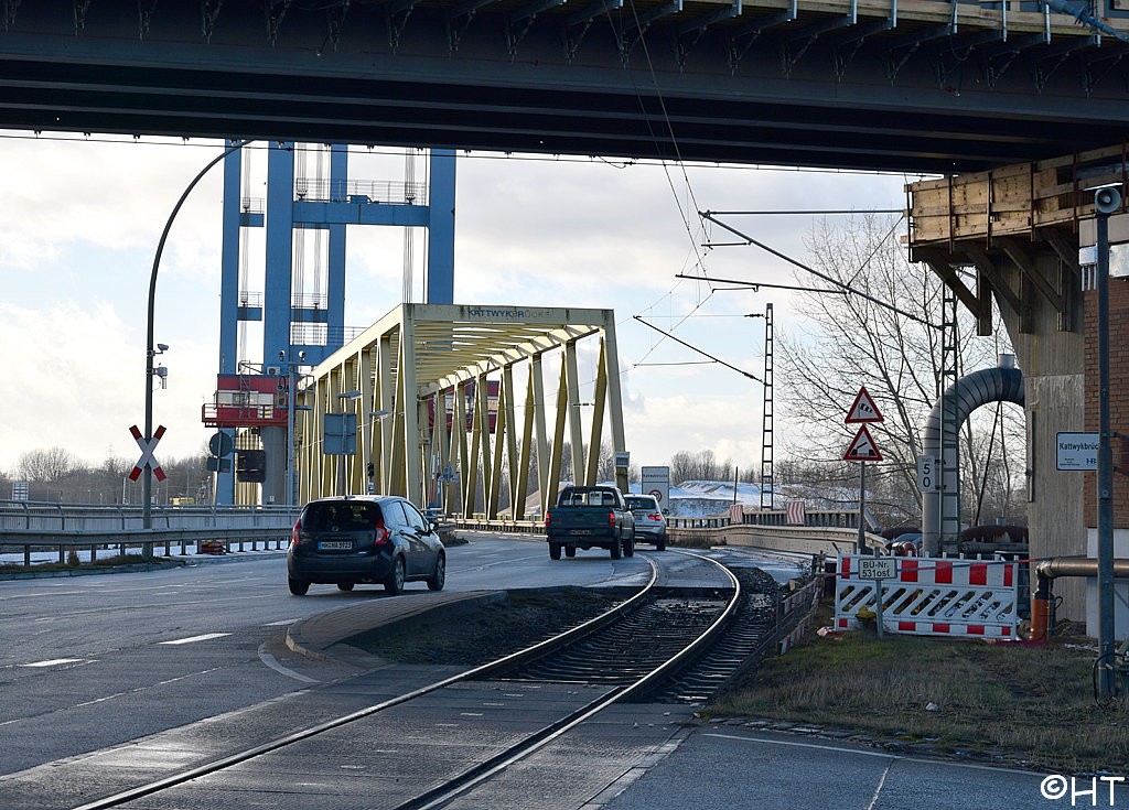 Im Hintergrund die Rethehubbrücke und die neue Retheklappbrücke