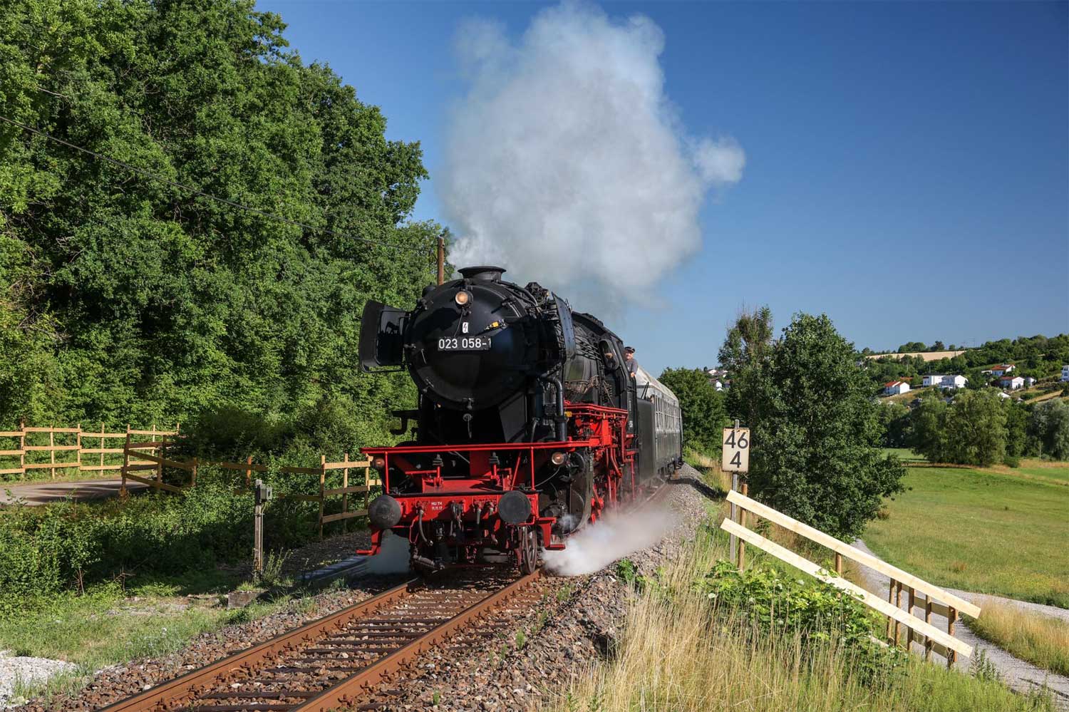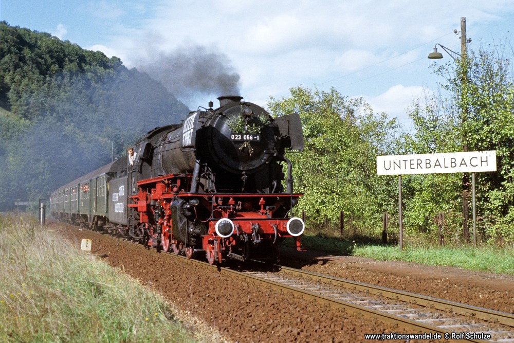 km 2,3 in Unterbalbach - 023 023 mit P 5526 (Crailsheim-Lauda)
