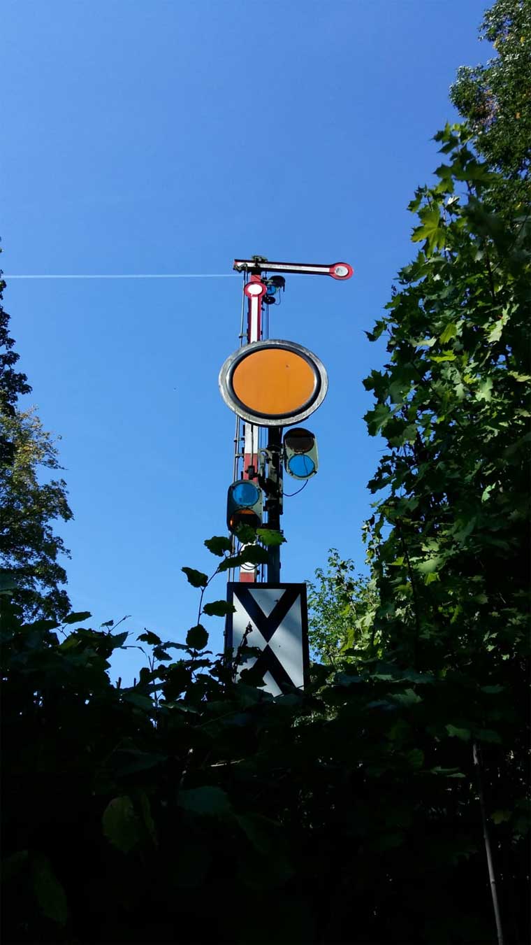 Die Weichenlaterne für die Weiche des mittleren Gleises steht wegen Platzmangels rechts vom rechten Gleis