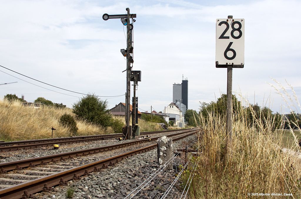 | km 30,45 der Strecke Goldshöfe 0,0 - Crailsheim 30,45 - Schwäbisch Hall-Hessental 57,67 - Heilbronn Hbf 118,60 - Grenze BD Stuttgart/BD Karlsruhe km 140,412 [ = km 43,037 - Eppingen 40,76 - Grötzingen 0,0 (später auch Angabe Eppingen 142,69) (siehe auch Tabelle 3, Ziffer 4)] | ||