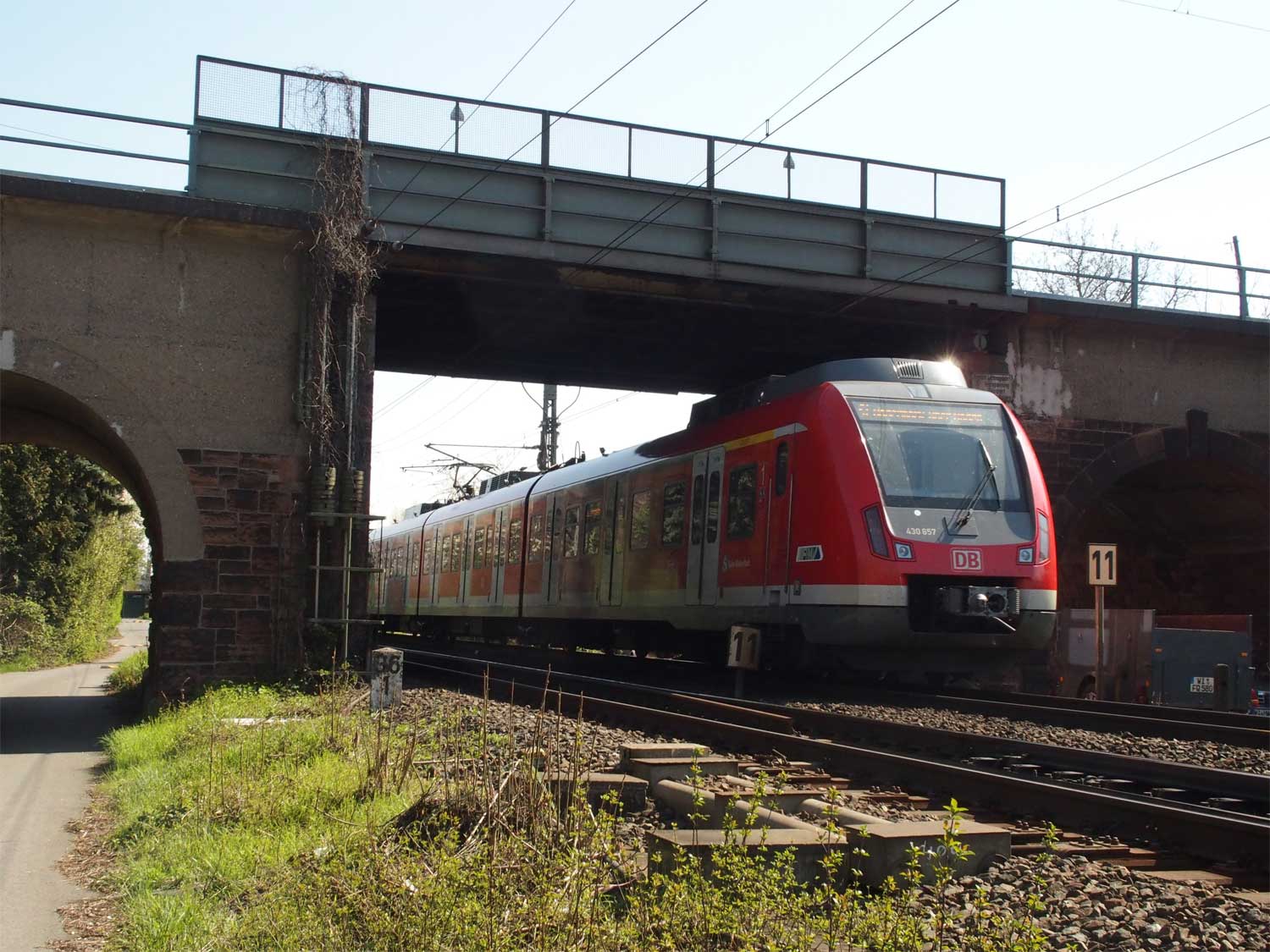 Oben über die Brücke die beiden Gleise des Streckenastes nach Wiesbaden Hbf