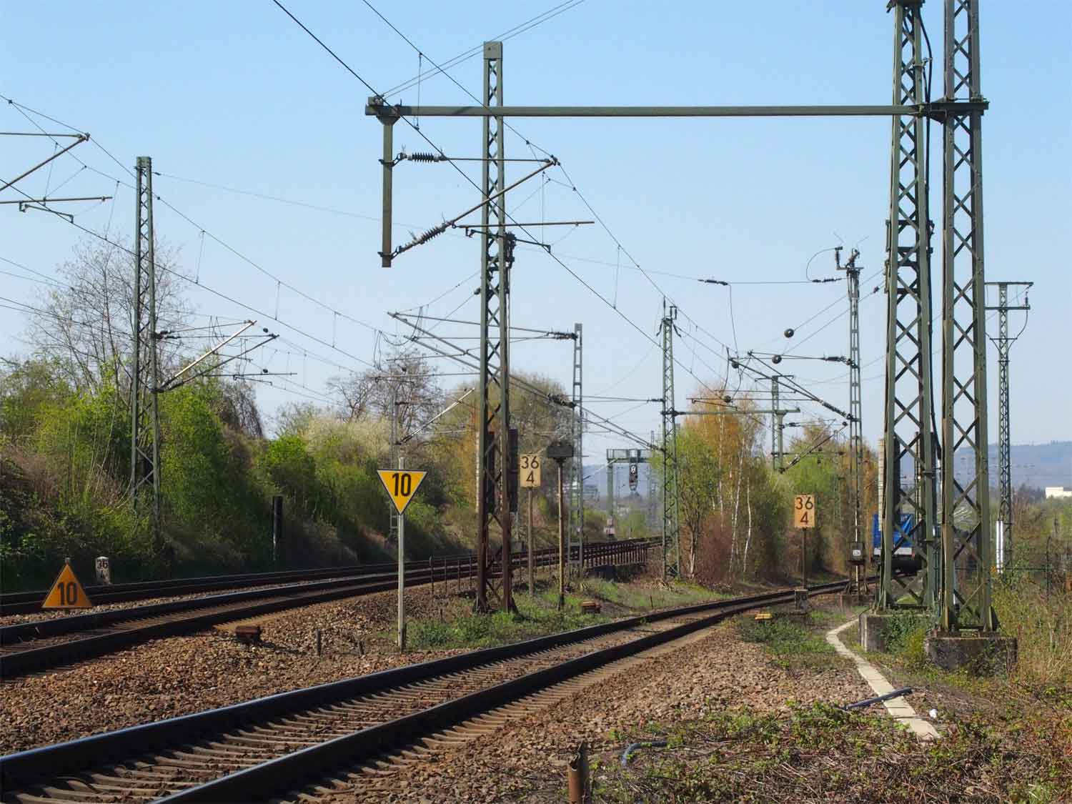 km 36,8 und km 36,9 (Richtungsgleis) in Wiesbaden Ost - Blick Richtung Niederlahnstein