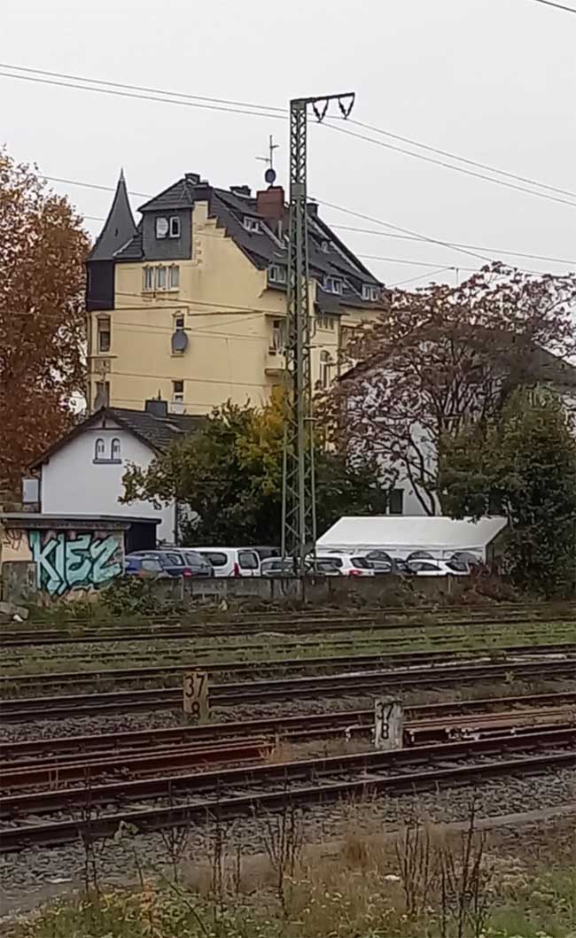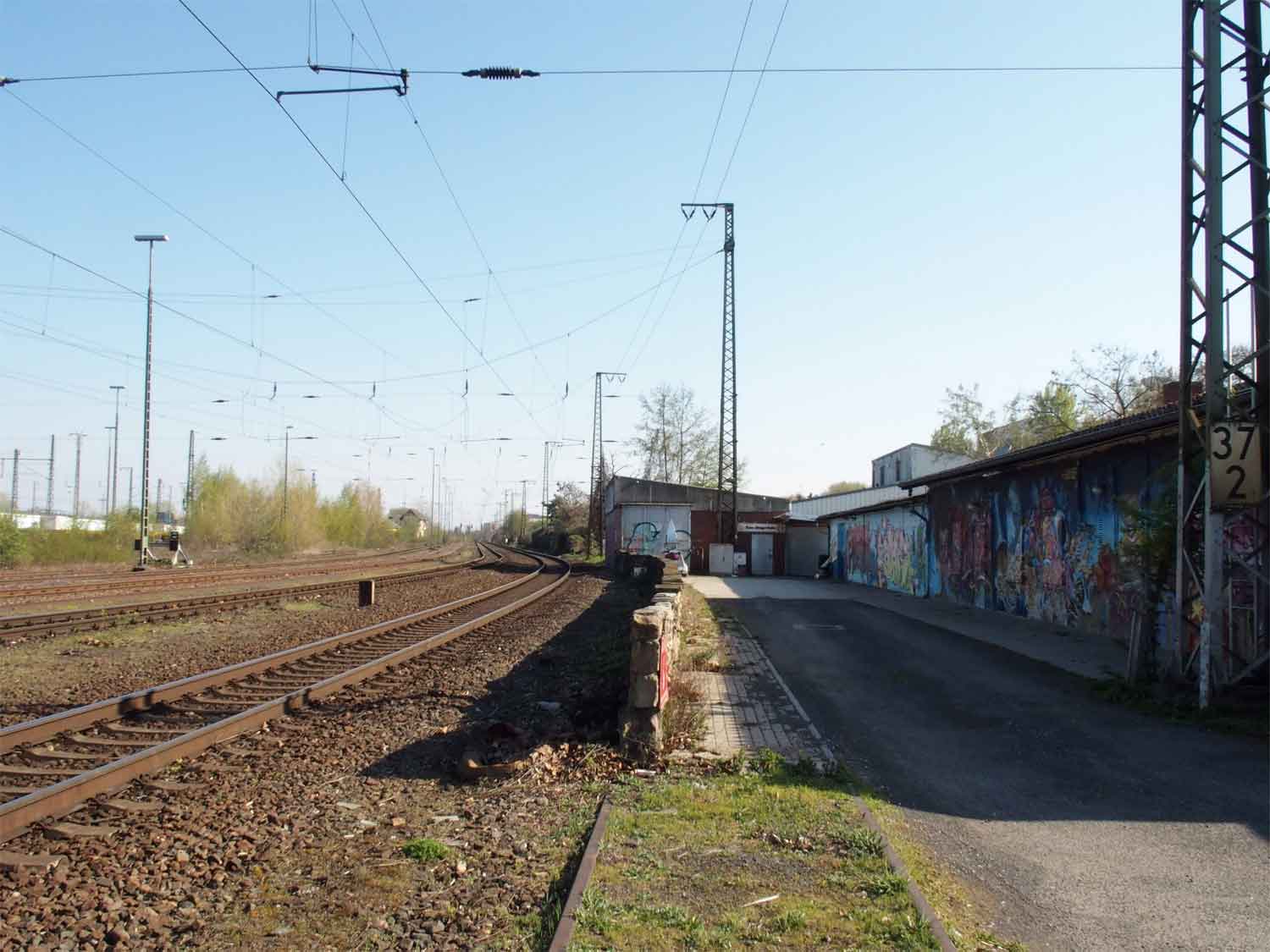 in der Mitte die beiden Gleise nach Wiesbaden Hbf
