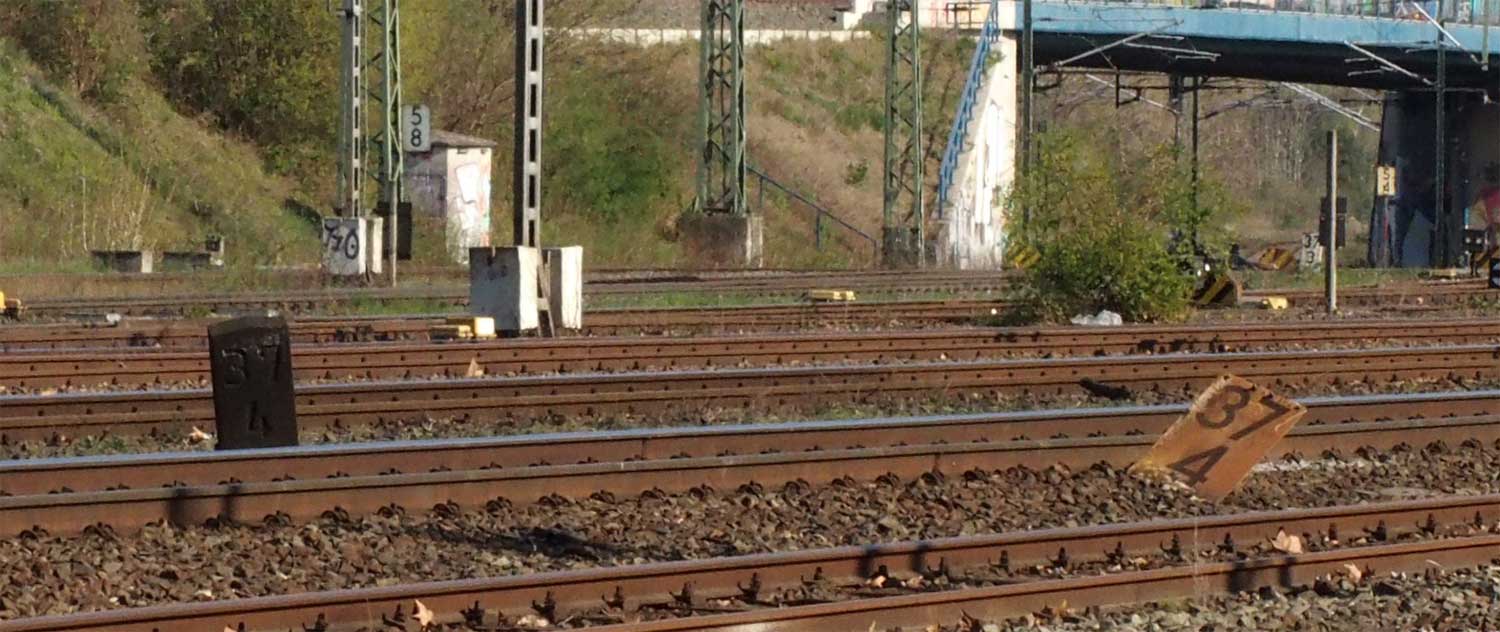 km 37,1 (Stein, Richtungsgleis) und km 37,2 (Stein, Richtungsgleis) in Wiesbaden Ost - Blick Richtung Niederlahnstein