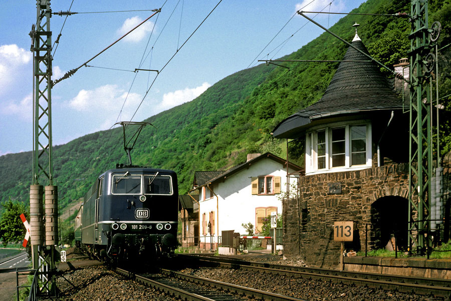 km 121,6 in Oberlahnstein und Brückenstellwerk Of - Blick Richtung Niederlahnstein