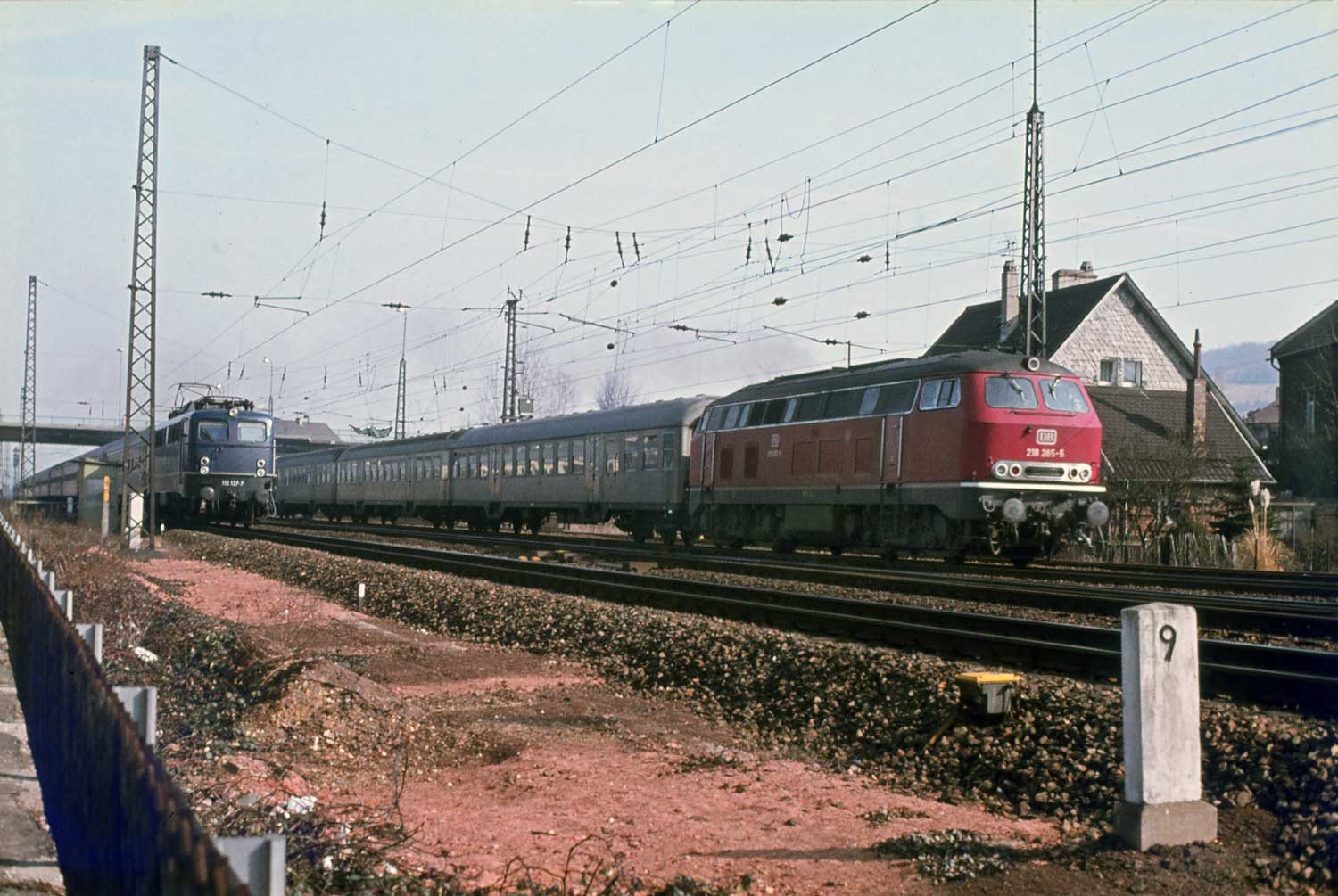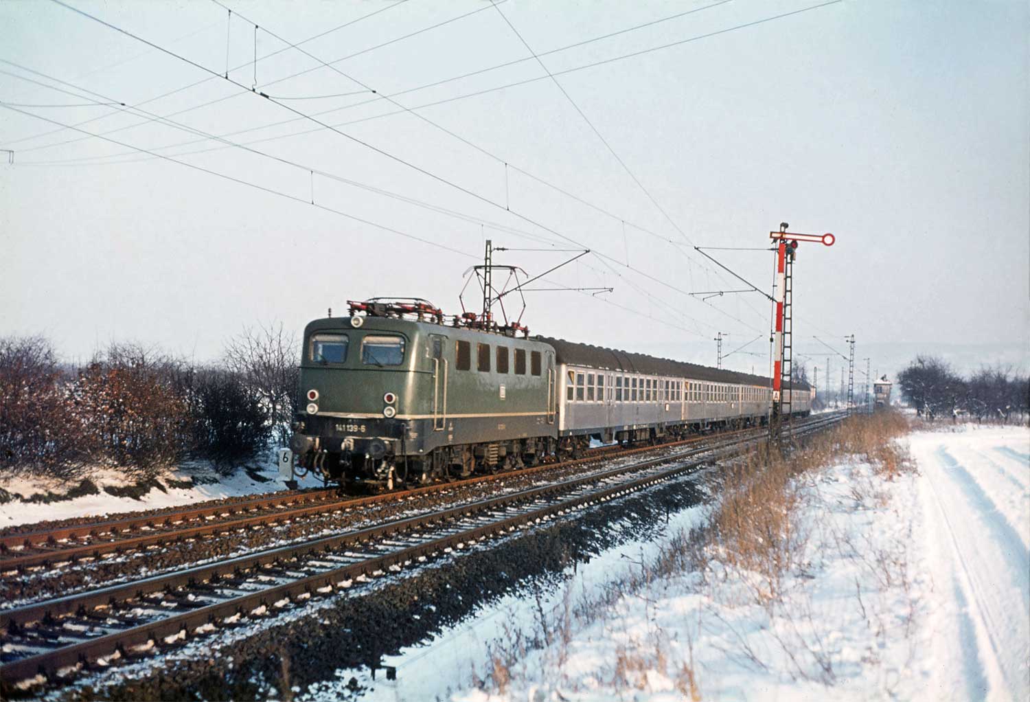 Gleiche Stelle bei km 0,6; aber Jahre später - Das Reiterstellwerk ist rosa.