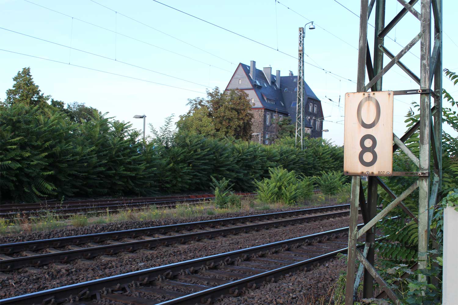 km 2,0 (links) gehört zur Strecke Mainz Hbf 0,0 - Wiesbaden Hbf 9,74 (linkes Gleis)