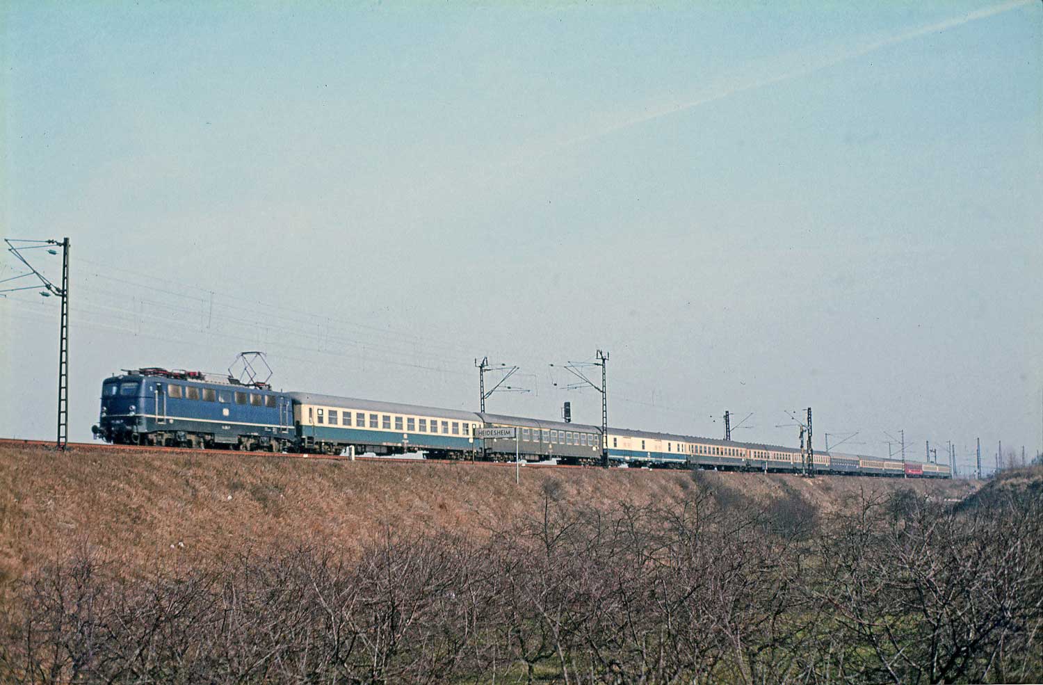 Kilometerwechsel auf der Nahebrücke - E10 1309 mit Rheingold
