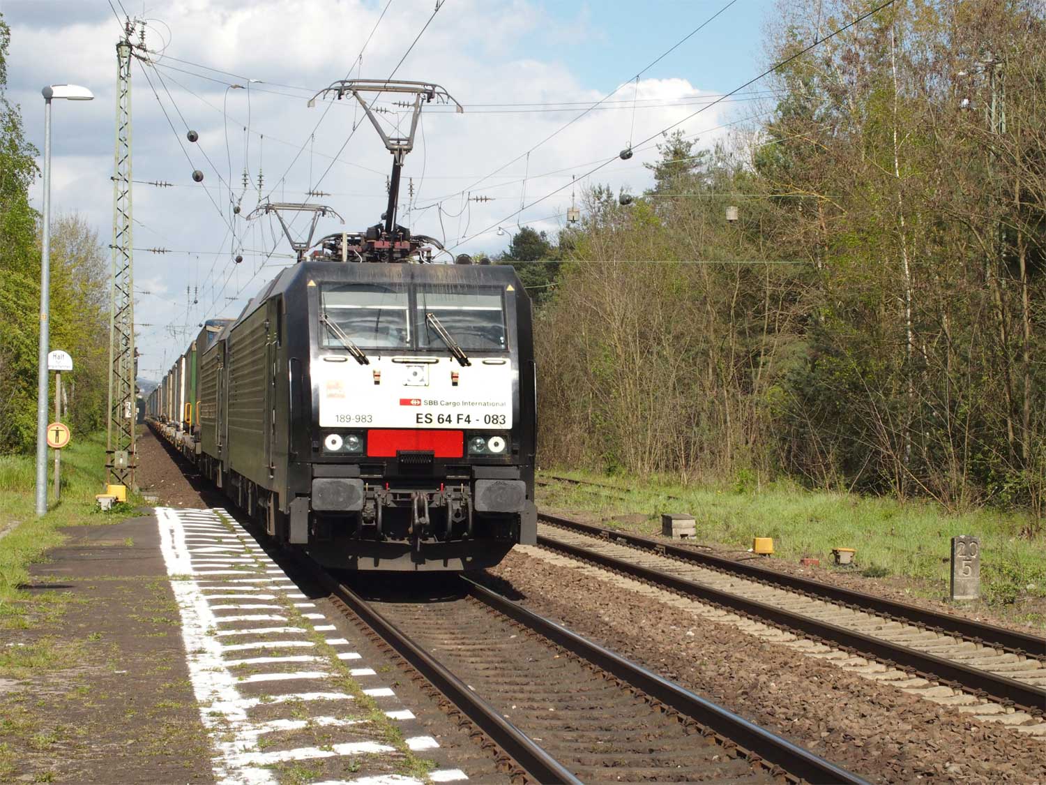 | km 49,09 der Strecke [Neunkirchen (Saar) 13,64 - Landesgrenze Preußen/Bayern - Homburg km 0,0 = km 8,37 - Ludwigshafen (Rh) Hbf 106,535 (kommend)/105,613 (gehend)] - Landesgrenze Pfalz/Hessen km 125,10 = km 0,0 - Worms 3,21 - Mainz Hbf 49,09 | ||