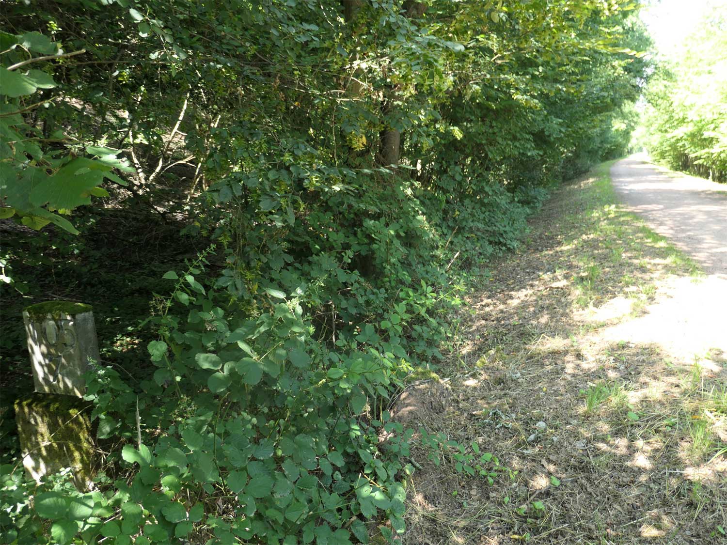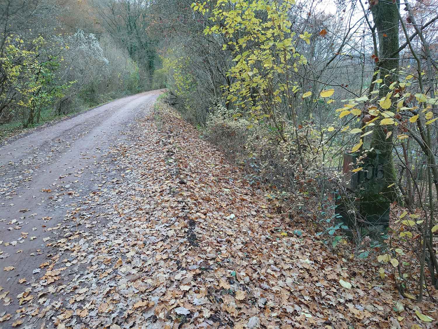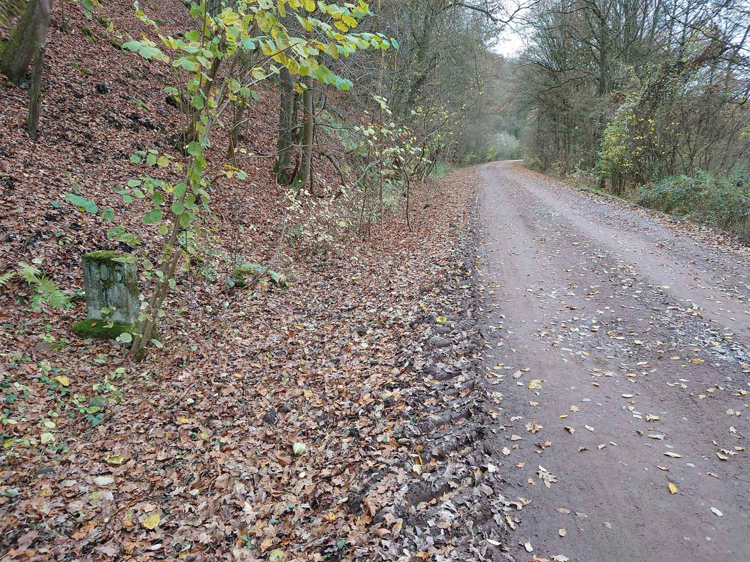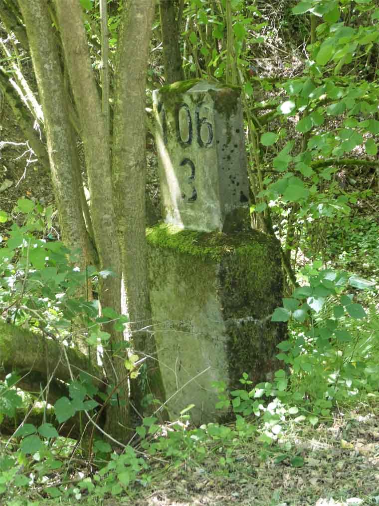 km 105,2 (Sockel) zwischen Duchroth und Bad Münster am Stein - Blick Richtung Homburg (Saar)