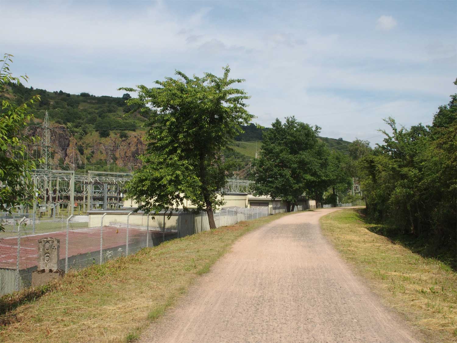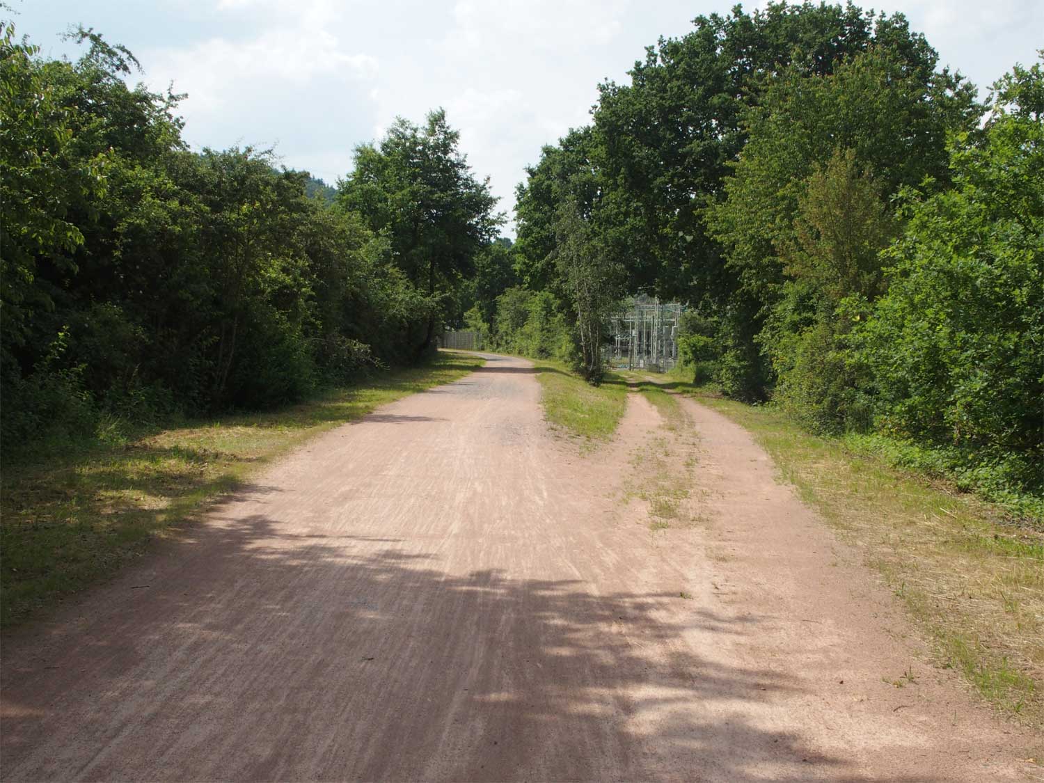 Rechts der Abzweig des ehemaligen Zufahrtsgleises zum RWE-Kraftwerk Niederhausen