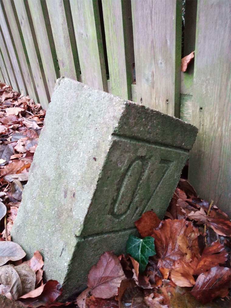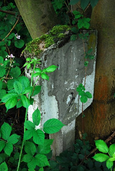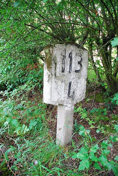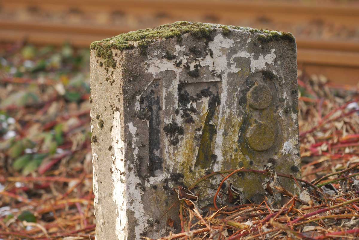 Davor noch verdeckt ein Kilometerstein.