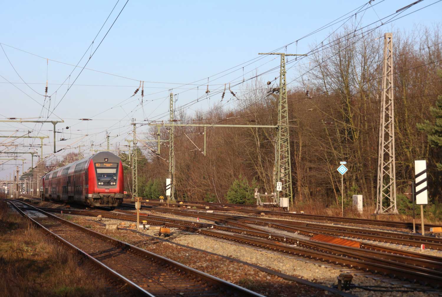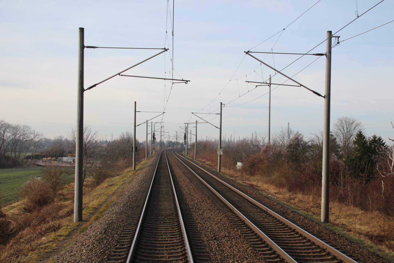 Rechts hinter der Schallschutzwand verläuft die Strecke