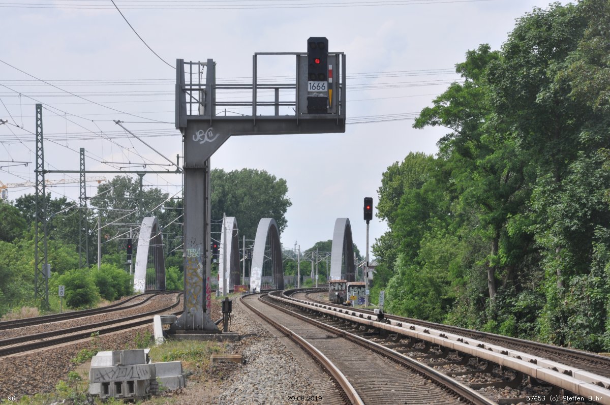 bei km 7,9 (Gegenrichtungsgleis) in Berlin-Schöneweide mit Stellwerk Swo