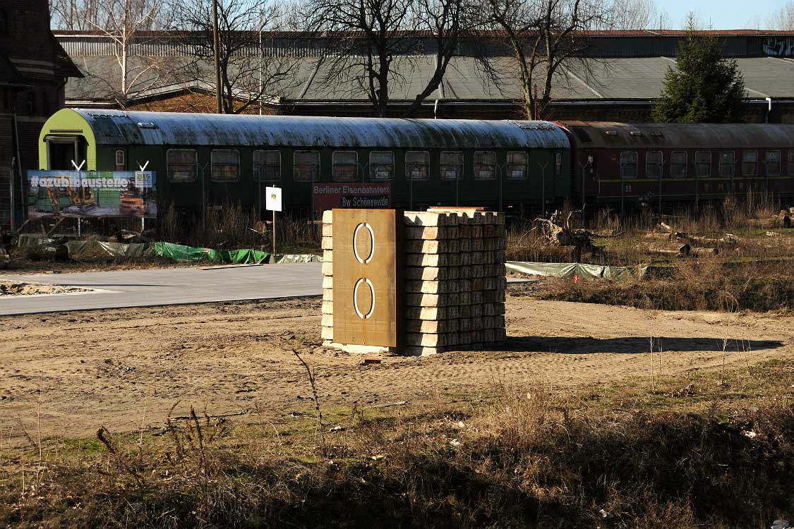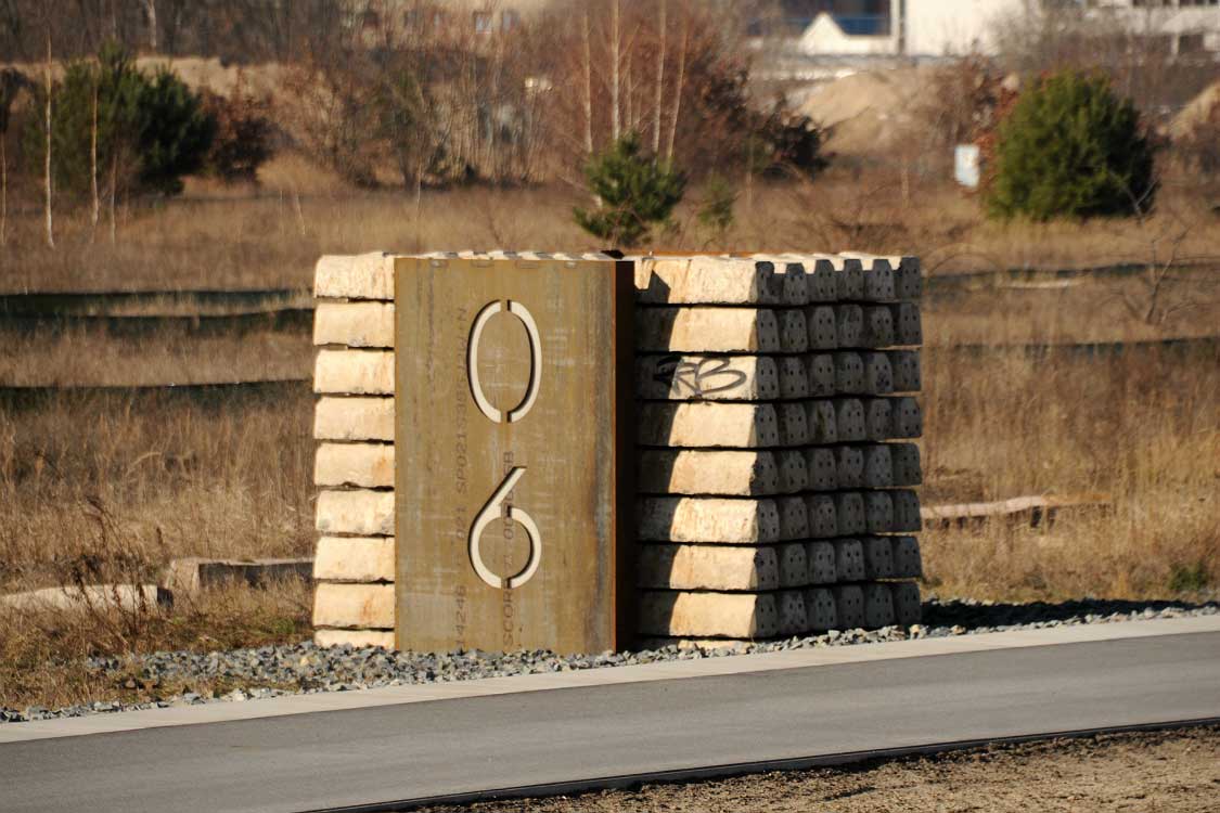 Ein Künstler hat dazu Schwellenstapel mit angedeuteten Kilometertafeln errichtet.