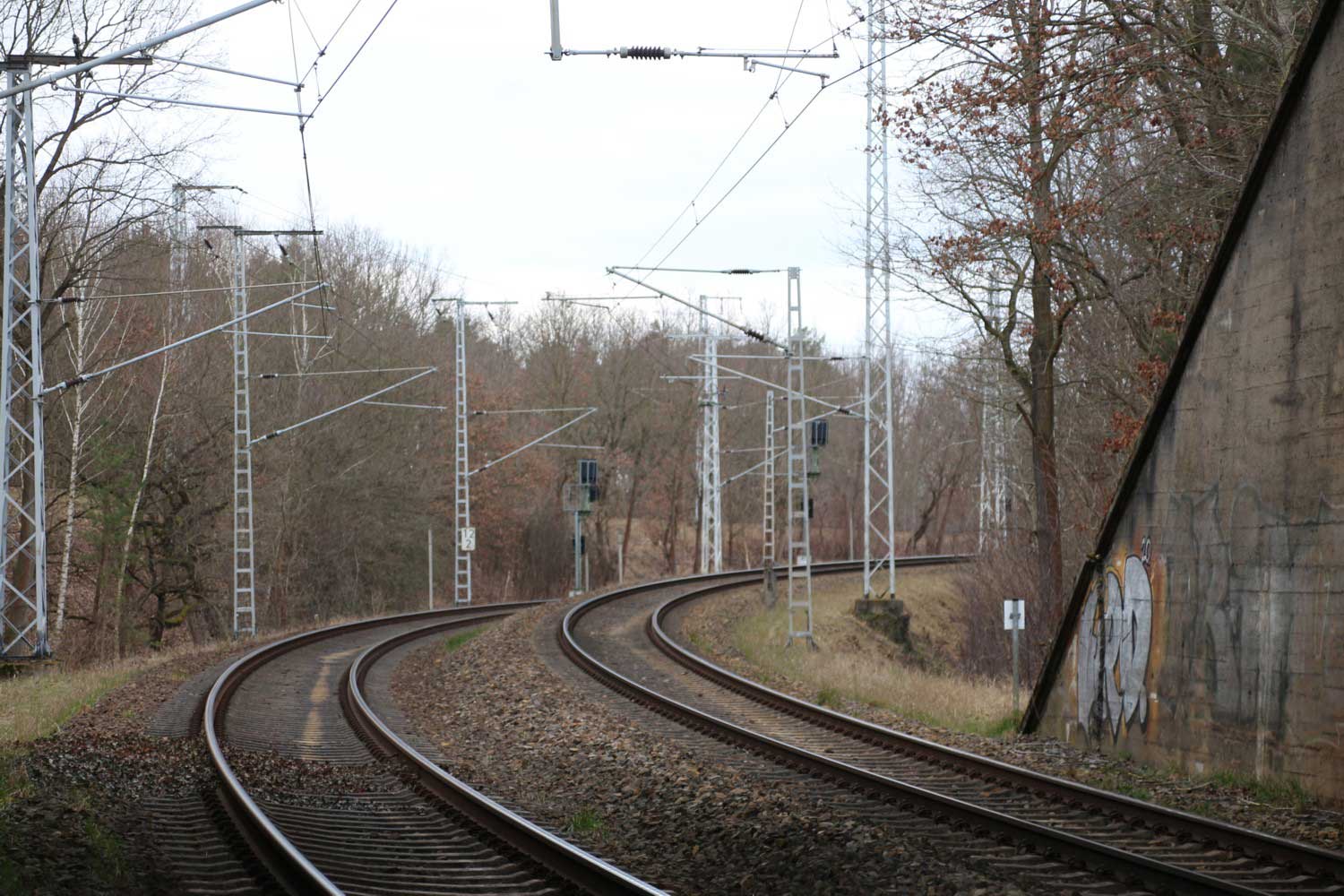 km 12,8 (Richtungsgleis) und km 13,0 (Richtungsgleis) im Bereich Grünauer Kreuz - Blick Richtung Görlitz