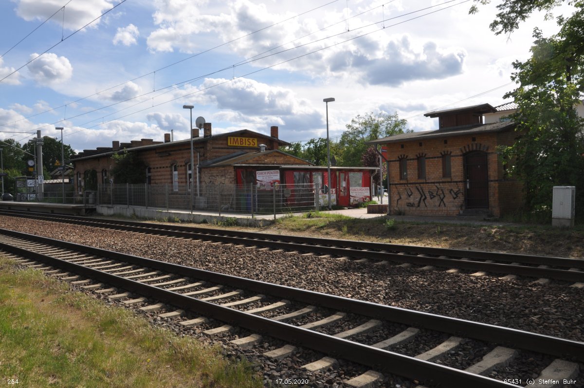 | Königs-Wusterhausen | 27,67 | km 58,04 der Strecke Grunow (Niederlaus) 0,0 - Beeskow 9,41 - Königs-Wusterhausen 58,04 |