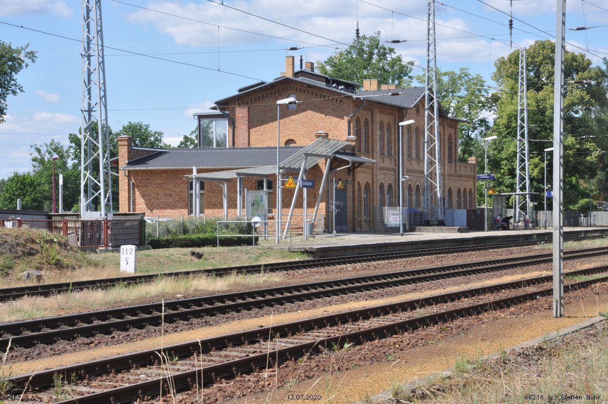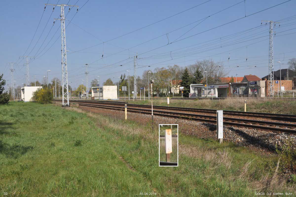 | km 87,91 der Strecke Strecke Kohlfurt 0,03 - Hoyerswerda 72,76 - Falkenberg (Elster) (unten) 147,88 - Wittenberg (Provinz Sachsen) [heute: Lutherstadt Wittenberg] 201,93 - Dessau-Roßlau [heute: Roßlau (Elbe)] 233,70 | ||