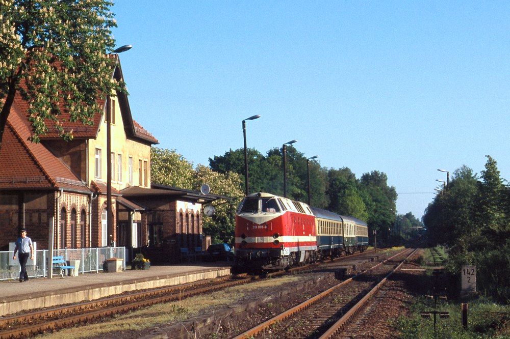 | Senftenberg (Niederlausitz) | 126,34 | km 45,29 der Strecke Großenhain Cottb. Bf 0,23 - Senftenberg 45,29 - Cottbus 79,67 - Frankfurt (Oder) Pbf 152,85 (Personenzuggleise)/152,79 (Güterzuggleise) |