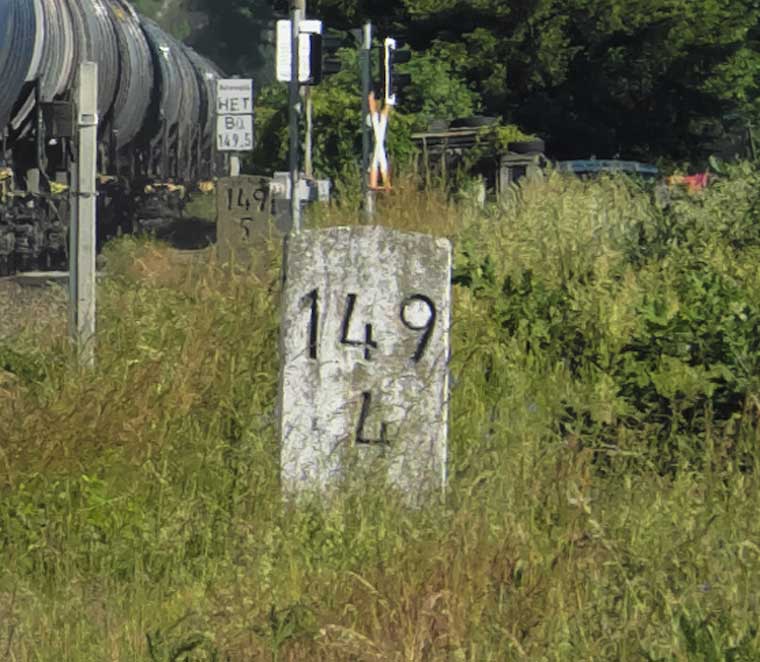 | ► | km 85,61 der abgehende Strecke Berlin Görlitzer Bf 0,0 - Lübbenau (Spreewald) 85,61 - Cottbus 114,74 - Görlitz 208,45 (kommend)/207,92 (gehend) - Hagenwerder (bis 1936: Nikrisch) 217,42 - Seidenberg 224,81 - Reichsgrenze 226,95 = (200,1 - Reichenberg 160,36 - Pardubitz 0,0) mit weiterlaufender Kilometrierung (Streckenverzweigung mit gemeinsamen Nullpunkt Görlitzer Bf) | |