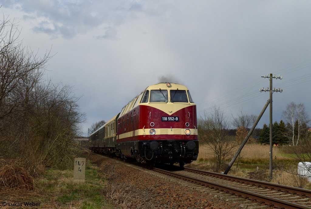 km 151,3 vor Cunnersdorf (b Kamenz) - Sonderzug mit 118 552