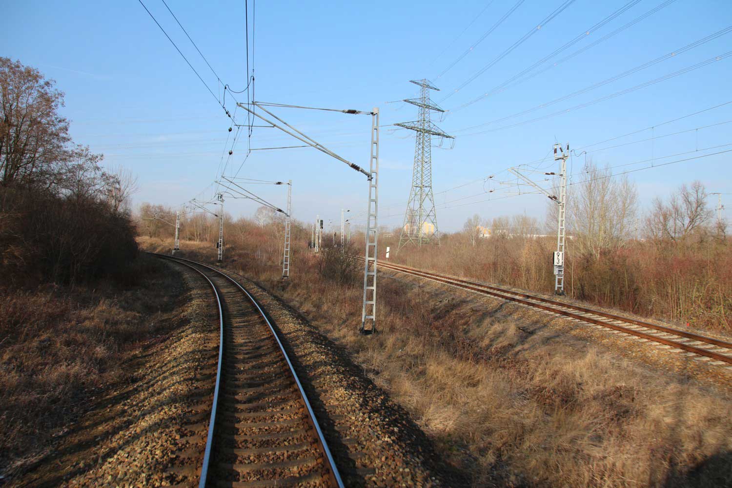 km 4,2 (Tafel am Oberleitungsmast) gehört zum Gegenrichtungsgleis der Strecke