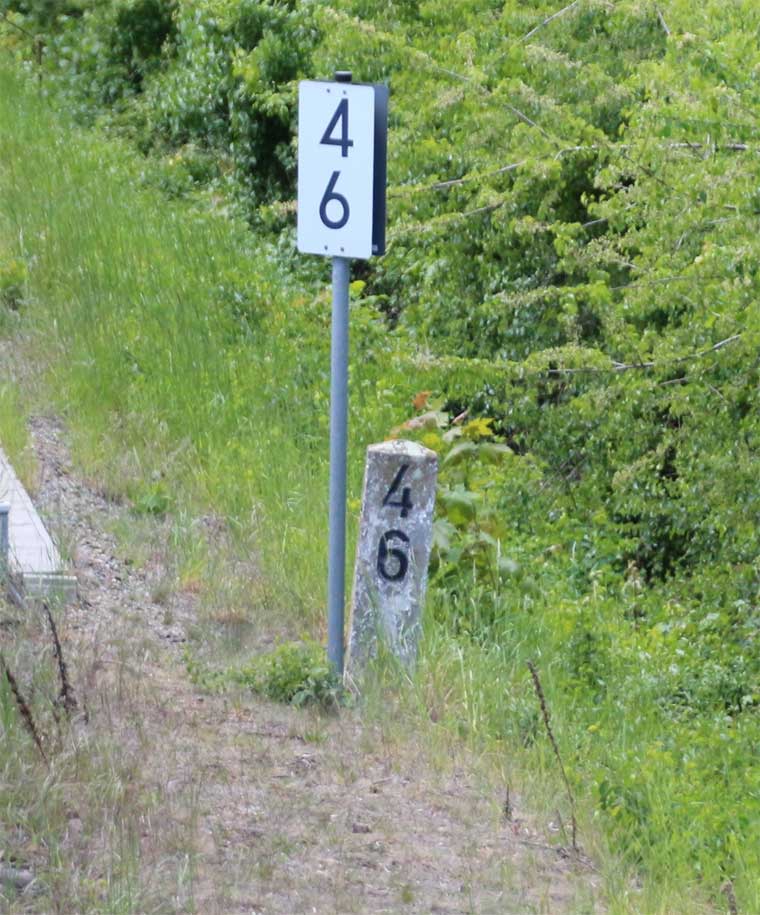km 4,4 (Tafel rechts) gehört zum Gegenrichtungsgleis der Strecke