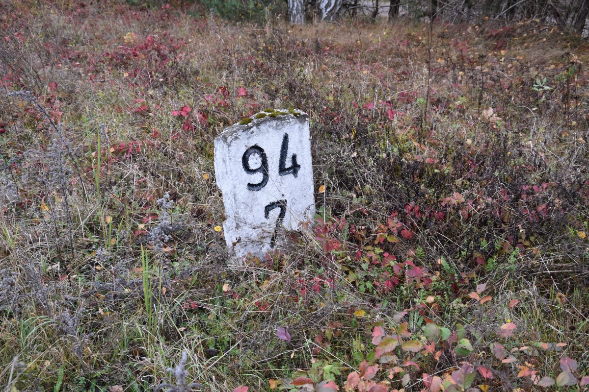 km 95,4 (Stein und Tafel) zwischen Schönow (Uckermark) und Casekow