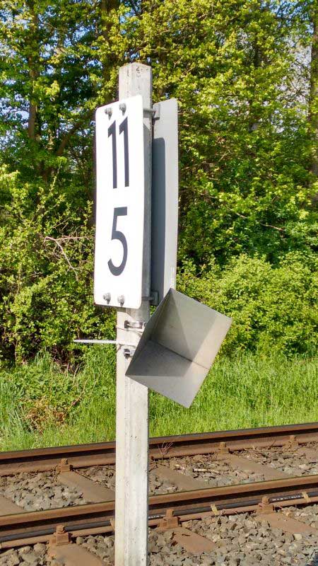 | ► | km 4,92 der abgehenden Strecke (Braunschweig Hbf 0,0) - Abzw Mückenburg 4,92 - Helmstedt 38,81 mit weiterlaufender Kilometrierung (Streckenverzeigung mit gemeinsamen Nullpunkt Braunschweig) | |