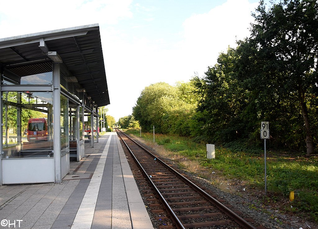 | ► | km 30,70 der abgehenden Strecke Hamburg-Altona 0,74 - Elmshorn 30,70 - Heide (Holst) 124,48 - Husum 158,26 - Niebüll 198,45 - Westerland (Sylt) 237,61 mit weiterlaufender Kilometrierung (Streckenverzweigung mit gemeinsamen Nullpunkt Hamburg-Altona) | |