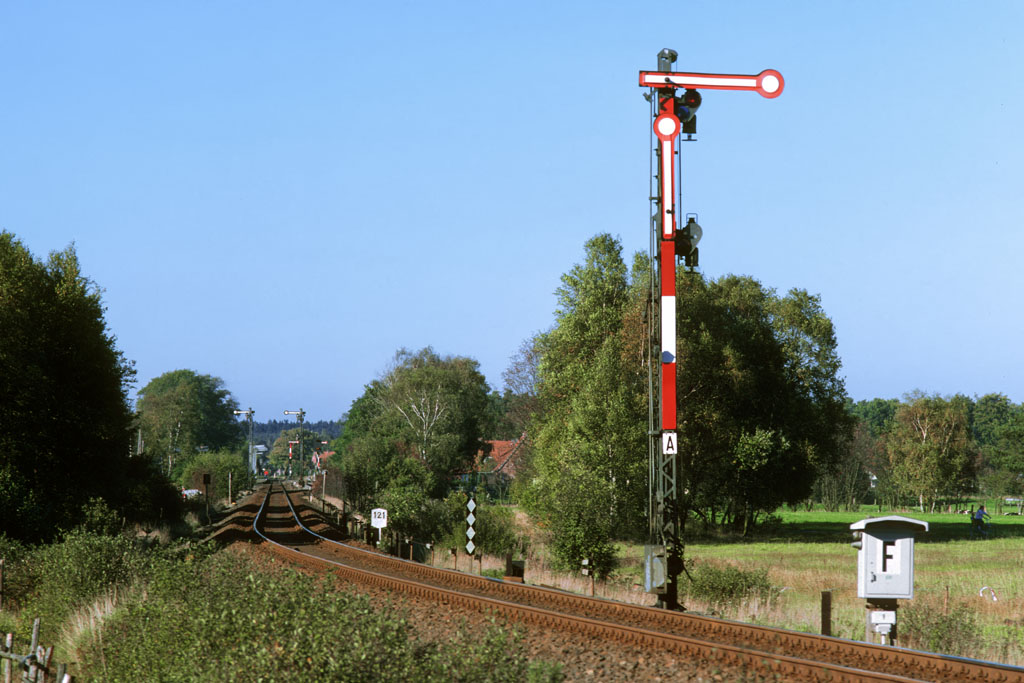 Im Hintergrund am Vorsignal ist km 63,0 des Streckenastes