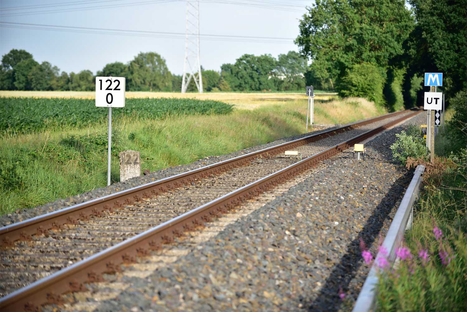 km 26,6 (Tafel) und km 26,7 (Stein) zwischen Großburgwedel und Moor - 120 110 mit IC 787
