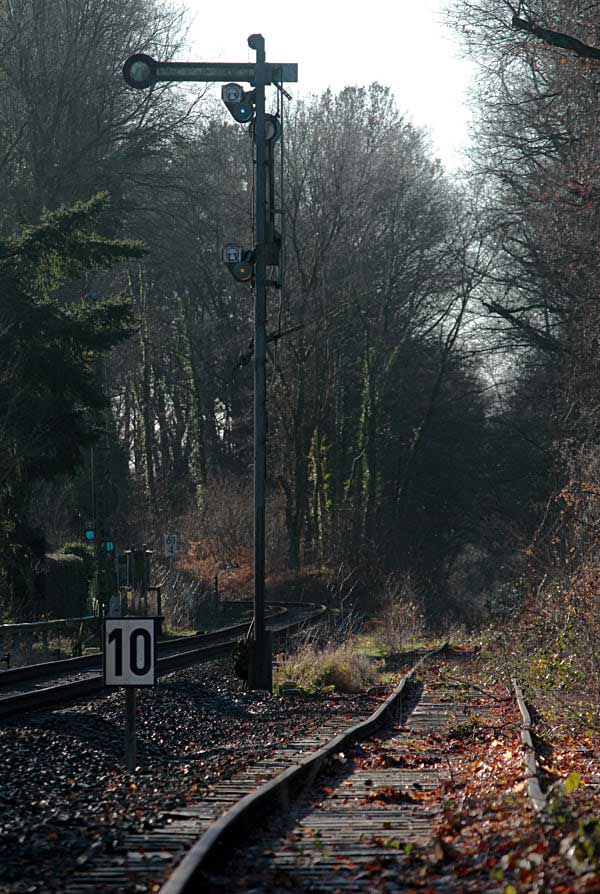 Der Kilometerstein ist verschwunden, aber das aufgestellte Ausfahrformvorsignal entschädigt dafür.