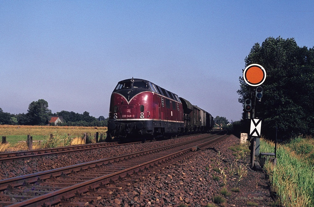 220 048 mit dem nachmittäglichen Ng nach Cuxhaven am km 248,2