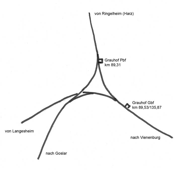Lage der Bahnhöfe in Grauhof